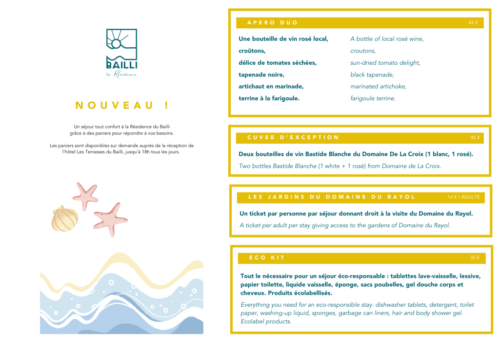 For all practical information during your stay, tourist attractions, leisure, weather, don’t hesitate to contact The reception of the hotel Les Terrasses du Bailli.